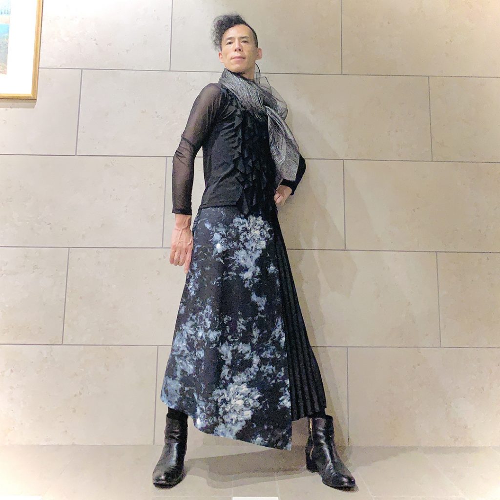 また、一般社団法人日本障がい者ファッション協会では、身体障がいのある方へのファッションも作り始めています。きっかけは、ある車椅子ユーザーの方にお会いしたことが始まりでした。10〜20代の若い時はおしゃれに興味があったけれど、徐々になくなって…という話をされていて。なぜかというと、試着の際に人の手を借りる必要があり、おしゃれ=自分の欲求のために迷惑をかけるということが少しずつ心苦しく、自分で心にふたをしてしまったと。何だか胸が締め付けられるような思いがしたんです。ならば、簡単に着ることのできる服を作ろうと企画しました。それが結実したのがオリジナルの巻きスカート『bottom’all』(ボトモール=ボトム+オールを組み合わせた造語)です。ただの巻きスカートではおもしろくないから男性も着られるものを目指した結果、ジェンダーレスでエイジレス、ボーダーレス…誰でもはいたらかっこよくなれる。そんな象徴的なアイテムになりました。ブランド名も『bottom’all』と掲げて。